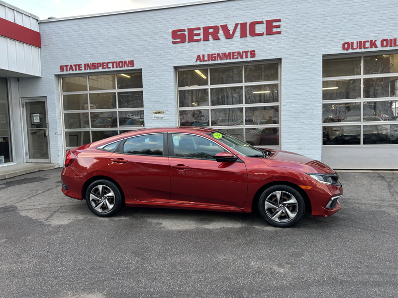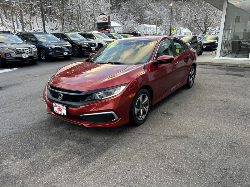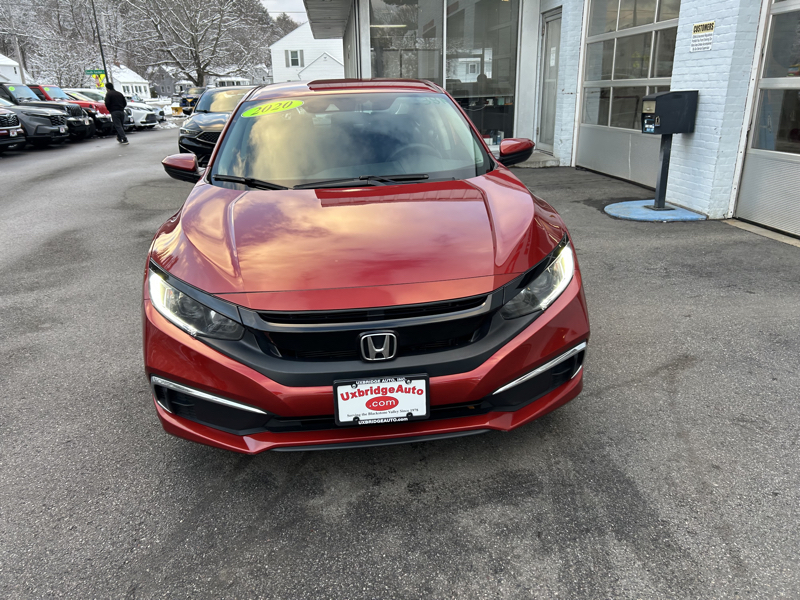 Welcome to UXBRIDGE AUTO, INC., where we are proud to present a stunning 2020 Honda Civic LX, offered at a competitive price of $20,490. This radiant Red sedan has been meticulously maintained with just 38,566 miles on the odometer. Under the hood, you'll find an efficient 2L 4-cylinder engine paired with a seamless CVT transmission, delivering a balanced blend of performance and fuel economy. The Civic LX comes packed with a host of features designed for your comfort, safety, and convenience. Enjoy the plush cloth seats and modern amenities such as air conditioning, AM/FM CD/MP3 stereo, and a USB port for connectivity. The keyless ignition and entry system add a touch of sophistication and ease to your daily routine. Safety is paramount in this Civic, which includes active belts, a backup camera, crash imminent braking (CIB), forward collision warning (FCW), lane departure warning (LDW), and lane-keeping assistance (LKA). The vehicle is equipped with dual rear side airbags, electronic stability control (ESC), and a tire pressure monitor system to ensure your peace of mind on the road. Additional features include a power sun/moonroof, power locks, windows, and brakes, as well as a telescoping steering wheel for a tailored driving experience. The daytime running lights and semiautomatic headlamp beam switching enhance visibility in all conditions. Don't miss out on this incredible opportunity. For further inquiries or to schedule a test drive, contact us at 508-278-6672. This web special is waiting to be claimed by a discerning driver like you.