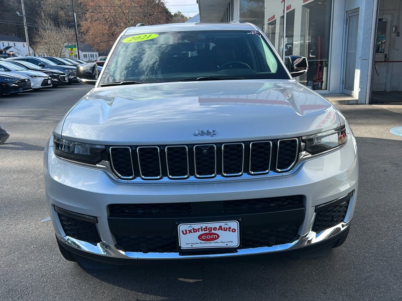 Discover the perfect blend of luxury and capability with this stunning 2021 Jeep Grand Cherokee L LIMITED, now available at UXBRIDGE AUTO, INC. Finished in a sleek silver, this SUV boasts a modest mileage of just 19,821 miles, ensuring a ride that feels as good as new. Under the hood, you'll find a robust 3.6L 6-cylinder engine paired with a smooth 8-speed automatic transmission, designed to deliver power and efficiency on any terrain. The Grand Cherokee L LIMITED doesn't skimp on safety or technology, featuring ABS (4-Wheel), active belts, a suite of airbags, and a forward-collision warning system for your peace of mind. The interior is a sanctuary of comfort with dual power seats wrapped in luxurious leather, dual-zone automatic climate control, and a moonroof that adds an airy feel to the cabin. Stay connected and entertained with Android Auto, Apple CarPlay, Bluetooth connectivity, and a premium sound system. Additional conveniences include a backup camera with sensors, remote start, power locks, and windows, as well as a power steering for an effortless driving experience. The exterior is complemented by styled wheels, privacy glass, a rear spoiler, and a sunroof, making this Grand Cherokee as stylish as it is functional. For more details or to schedule a test drive, contact UXBRIDGE AUTO, INC. at 508-278-6672 today, and seize the opportunity to own this exceptional vehicle with an exclusive web special offer.