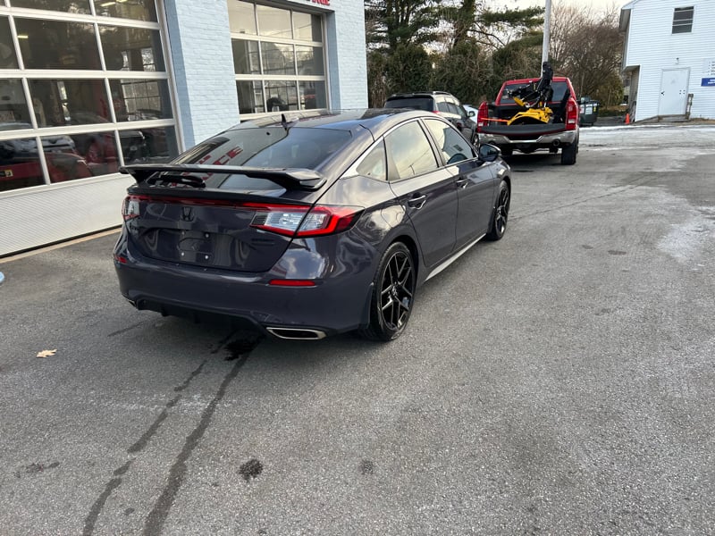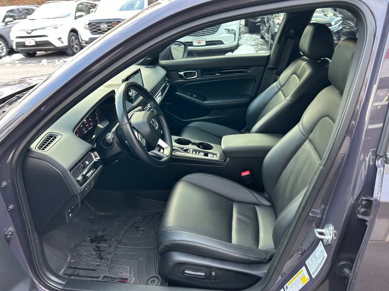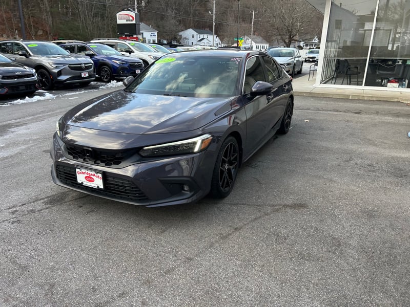 Discover the perfect blend of performance, safety, and technology with the 2022 Honda Civic SPORT TOURING now available at UXBRIDGE AUTO, INC. This sleek Gray sedan, with a mileage of 43,591, represents a harmonious balance between spirited driving and practicality. At its heart lies a turbocharged 1.5L 4-cylinder engine paired with a smooth automatic transmission, ensuring a responsive and fuel-efficient ride. The SPORT TOURING trim is well-equipped for both comfort and convenience, featuring a luxurious leather interior and a power sunroof that adds an open-air feel to every journey. Enjoy the ease of keyless ignition, remote start, and a power driver's seat tailored for your utmost comfort. Safety is paramount with an array of features including active belts, front and side curtain airbags, blind spot warning, collision imminent braking, lane departure warning, and electronic stability control. Stay connected with Android Auto, Apple CarPlay, and Bluetooth connectivity, all accessible via a touch screen audio system with voice controls. The premium sound system, styled wheels, and rear spoiler elevate the vehicle's aesthetic, while practical elements like a backup camera and tire pressure monitor system ensure peace of mind. For more information or to schedule a test drive, please call us at 508-278-6672. Discover the exceptional driving experience of the 2022 Honda Civic SPORT TOURING at UXBRIDGE AUTO, INC. today!