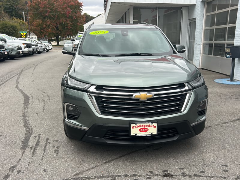 Step into the future of driving with the 2023 Chevrolet Traverse LT, now available at UXBRIDGE AUTO, INC. This striking green Traverse boasts a mere 33,331 miles on its powerful 3.6L 6-cylinder engine, paired with a smooth automatic transmission for effortless driving. The LT trim is packed with modern features to enhance your driving experience. Stay safe with Advanced Automatic Crash Notification, Blind Spot Warning, and Forward Collision Warning systems. Connectivity is a breeze with Android Auto, Apple CarPlay, and Bluetooth, while the premium sound system and USB port ensure your favorite tracks accompany every journey. Comfort isn't compromised with cloth seats, power adjustments, and a range of convenience options like keyless ignition, remote start, and a power liftgate for ease of access. The Traverse doesn't shy away from inclement weather or nighttime driving with features like automatic headlamp beam switching, Daytime Running Lights, and tinted glass for glare reduction. Ride with confidence thanks to Electronic Stability Control, Traction Control, and a suite of airbags. The premium wheels add a touch of class to its already captivating design. Whether it's for daily commutes or family adventures, this Traverse is equipped to cater to all your needs. Visit UXBRIDGE AUTO, INC. today or call us at 508-278-6672 to take a closer look at this superb vehicle. Don't miss our Web Special on this all-encompassing 2023 Chevrolet Traverse LT!