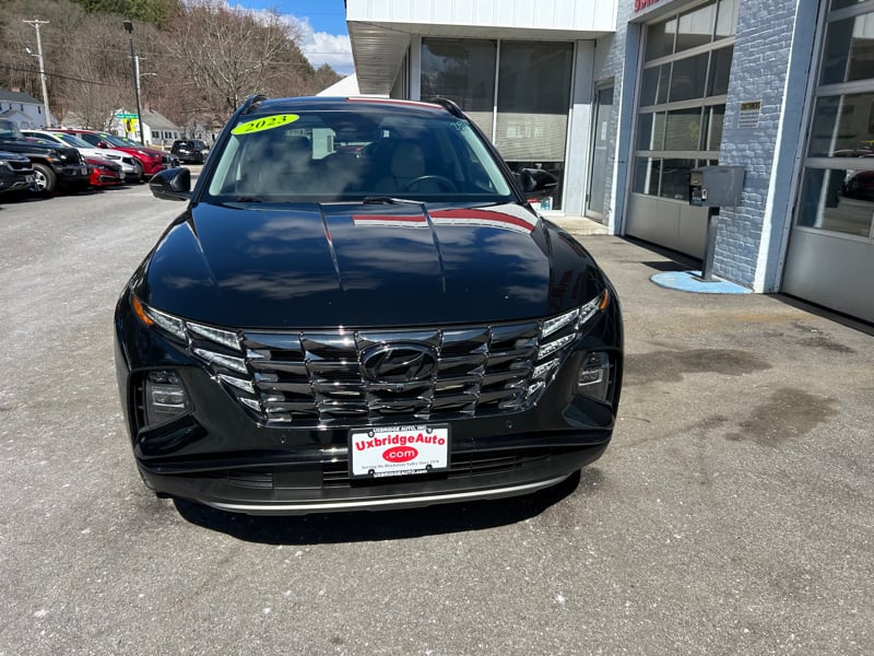 Discover the 2023 Hyundai Tucson LIMITED available now at UXBRIDGE AUTO, INC. This sleek black SUV combines modern design, advanced technology, and impressive performance. Powered by a 2.5L 4-cylinder engine paired with an 8-speed automatic transmission, it delivers a smooth and efficient drive. With only 24,490 miles, this Tucson offers great value and reliability. Inside, you'll find exceptional comfort with leather seating, a power seat, moonroof, and premium sound system. Connectivity features include Bluetooth, Apple CarPlay, Android Auto, and voice controls. Safety and driver-assist technologies abound, such as Forward Collision Warning, Blind Spot Monitoring, Lane Departure Warning, Lane Keeping Assistance, and a Backup Camera. Additional features include Remote Start, Keyless Ignition, Power Locks and Windows, Parking Assist, and Rear Cross Traffic Alert. Stylish touches like premium wheels, rear spoiler, and tinted glass add to its appeal. This Tucson LIMITED blends luxury and practicality, making it a perfect choice for drivers seeking confidence and comfort on the road. For more information or to schedule a test drive, contact UXBRIDGE AUTO, INC. at 508-278-6672.