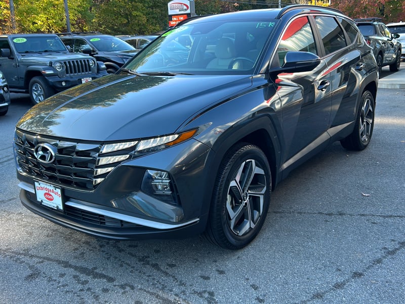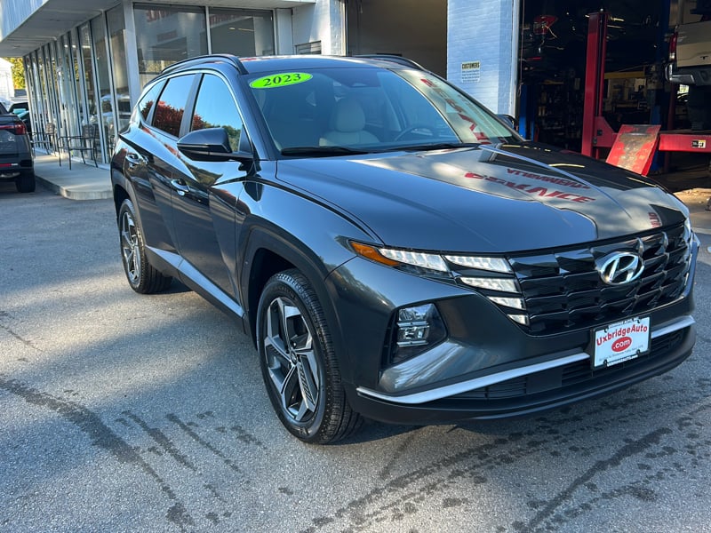Discover the epitome of modern driving with the 2023 Hyundai Tucson SEL, now available at UXBRIDGE AUTO, INC. This sleek gray SUV boasts a mere 15,417 miles on the odometer and is powered by an efficient 2.5L 4-cylinder engine paired with a smooth 8-speed automatic transmission. The Tucson SEL is a sanctuary of safety and technology, featuring Active Belts and a suite of airbags, including dual front, side, and rear side airbags, ensuring peace of mind for you and your passengers. The cabin offers luxurious leather seating and dual-zone air conditioning, creating a comfortable environment for all. Embrace connectivity with both Android Auto and Apple CarPlay, ensuring you stay linked to your world while on the move. The vehicle comes equipped with a premium sound system, USB ports, and Bluetooth connectivity for effortless entertainment and communication. Advanced driver assistance systems like Blind Spot Intervention, Lane Departure Warning, Lane Keeping Assistance, and Forward Collision Warning enhance your driving confidence, while the Rear Cross Traffic Alert and Backup Camera make parking and reversing a breeze. Enjoy additional amenities such as a moonroof, remote start, power seat adjustments, and premium wheels, all contributing to a driving experience that is both luxurious and practical. For more information or to schedule a test drive, contact UXBRIDGE AUTO, INC. at 508-278-6672.