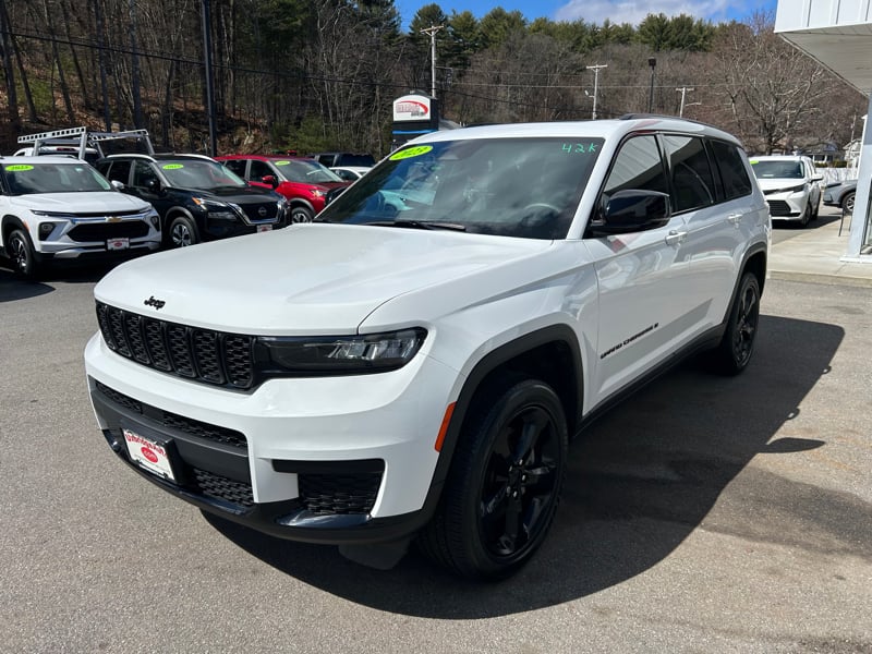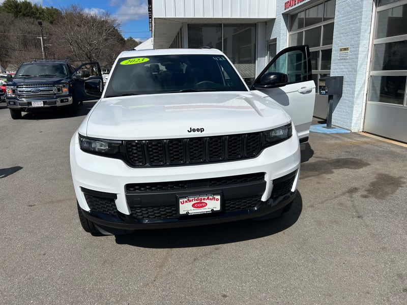 Discover the 2023 Jeep Grand Cherokee L Laredo at UXBRIDGE AUTO, INC., an SUV designed to deliver comfort, safety, and performance. This White Grand Cherokee has 42,752 miles and is powered by a 3.6L 6-cylinder engine paired with an 8-speed automatic transmission, offering smooth and responsive driving. Inside, enjoy modern connectivity with Android Auto, Apple CarPlay, USB port, and voice controls. The cabin features dual-zone automatic climate control, power seat, power windows, and a moonroof for an elevated driving experience. Safety is at the forefront with ABS (4-wheel), multiple airbags, blind-spot monitoring, traction control, and backup sensors. A backup camera and remote start add convenience and peace of mind. Premium wheels, privacy glass, and a sleek design complete this capable SUV. For more details or to schedule a test drive, contact UXBRIDGE AUTO, INC. at 508-278-6672.