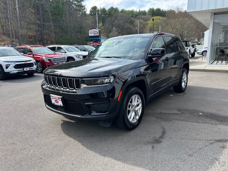 Discover the 2024 Jeep Grand Cherokee Laredo at UXBRIDGE AUTO, INC. This black SUV combines modern design and performance with a 3.6L 6-cylinder engine paired with an 8-speed automatic transmission. With only 19,761 miles, it delivers a confident and comfortable driving experience. Inside, enjoy cloth seats, dual-zone automatic climate control, a telescoping and tilt steering wheel, and power features including locks, windows, and seat adjustments. The Grand Cherokee Laredo is equipped with advanced technology such as keyless ignition, remote start, a backup camera, and a USB port for convenience. Safety is a top priority with features like ABS (4-wheel), multiple airbag systems, blind spot warning and intervention, lane departure warning, lane keeping assistance, forward collision warning, and pedestrian automatic emergency braking. Additional highlights include alloy wheels, privacy glass, daytime running lights, and electronic stability control. This Grand Cherokee Laredo offers a blend of capability, safety, and comfort-ready for your next adventure. Visit UXBRIDGE AUTO, INC. or call 508-278-6672 for more information about this web special.