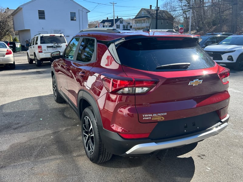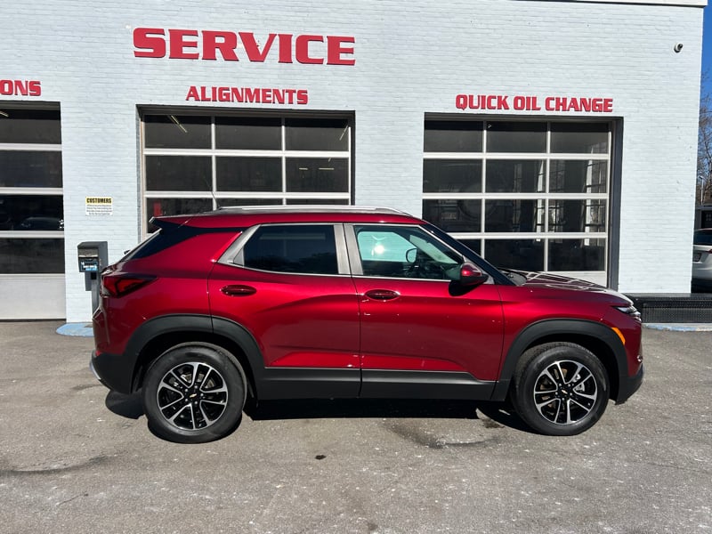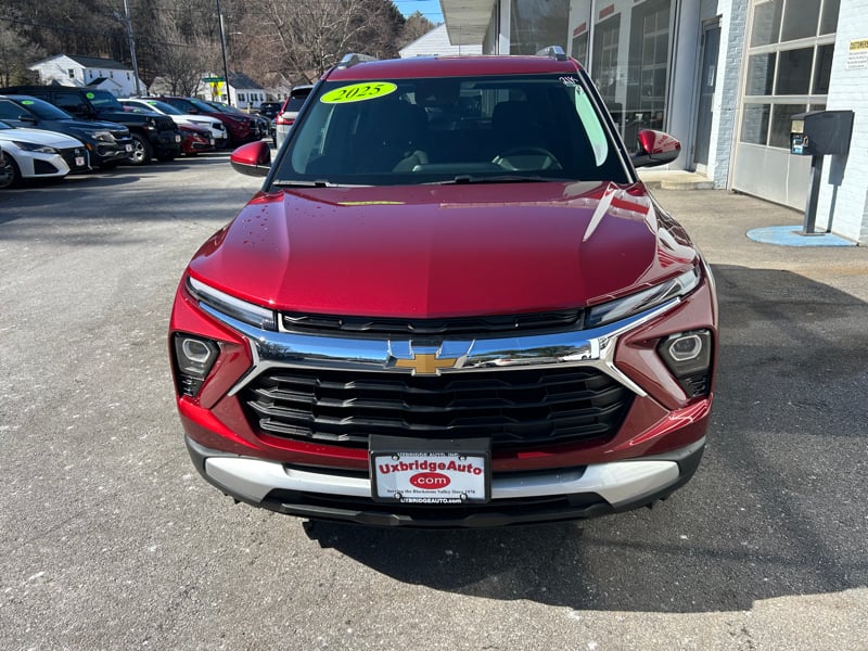 Discover this 2025 Chevrolet Trailblazer LT available now at UXBRIDGE AUTO, INC. This compact SUV stands out in a striking red finish and has just 21,728 miles. Powered by a responsive 1.3L 3-cylinder turbocharged engine paired with a smooth 9-speed automatic transmission, it delivers an efficient and confident driving experience. Inside, you'll find comfort and technology features including air conditioning, power windows, keyless ignition, and a telescoping tilt steering wheel. Stay connected with Android Auto, Apple CarPlay, USB port, and voice controls. Safety is a top priority with advanced systems such as forward collision warning, lane departure warning, lane keeping assistance, pedestrian automatic emergency braking, and a backup camera. Additional protections include dual front, head, and side airbags, rear dual side airbags, and electronic stability control. With features like privacy glass, daytime running lights, and a rear wiper, this Trailblazer LT is ready for everyday adventures. To learn more or schedule a test drive, contact UXBRIDGE AUTO, INC. at 508-278-6672.